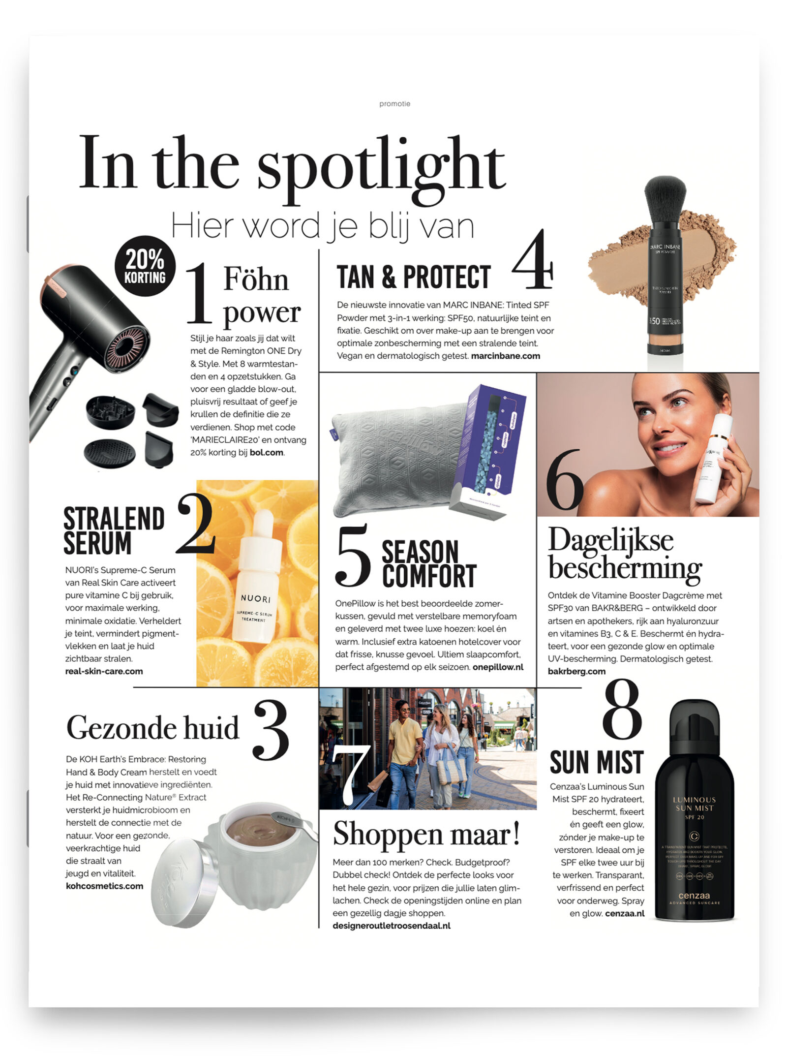 Nieuw in print of benieuwd naar de impact van topmagazines? Onze starterspakketten zijn speciaal samengesteld voor beautymerken die slim willen instappen. Zonder grote risico’s, mét maximale zichtbaarheid in sterke vrouwentitels zoals ELLE, &C en JAN. Zo ervaar je direct wat een boost in autoriteit én bereik voor jouw merk doet — tegen een verrassend toegankelijk instaptarief.