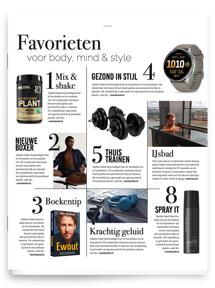 Laat jouw merk schitteren met advertenties in titels zoals Men’s Health, Santé & Yoga Magazine — en verover zo het hart van jouw doelgroep.