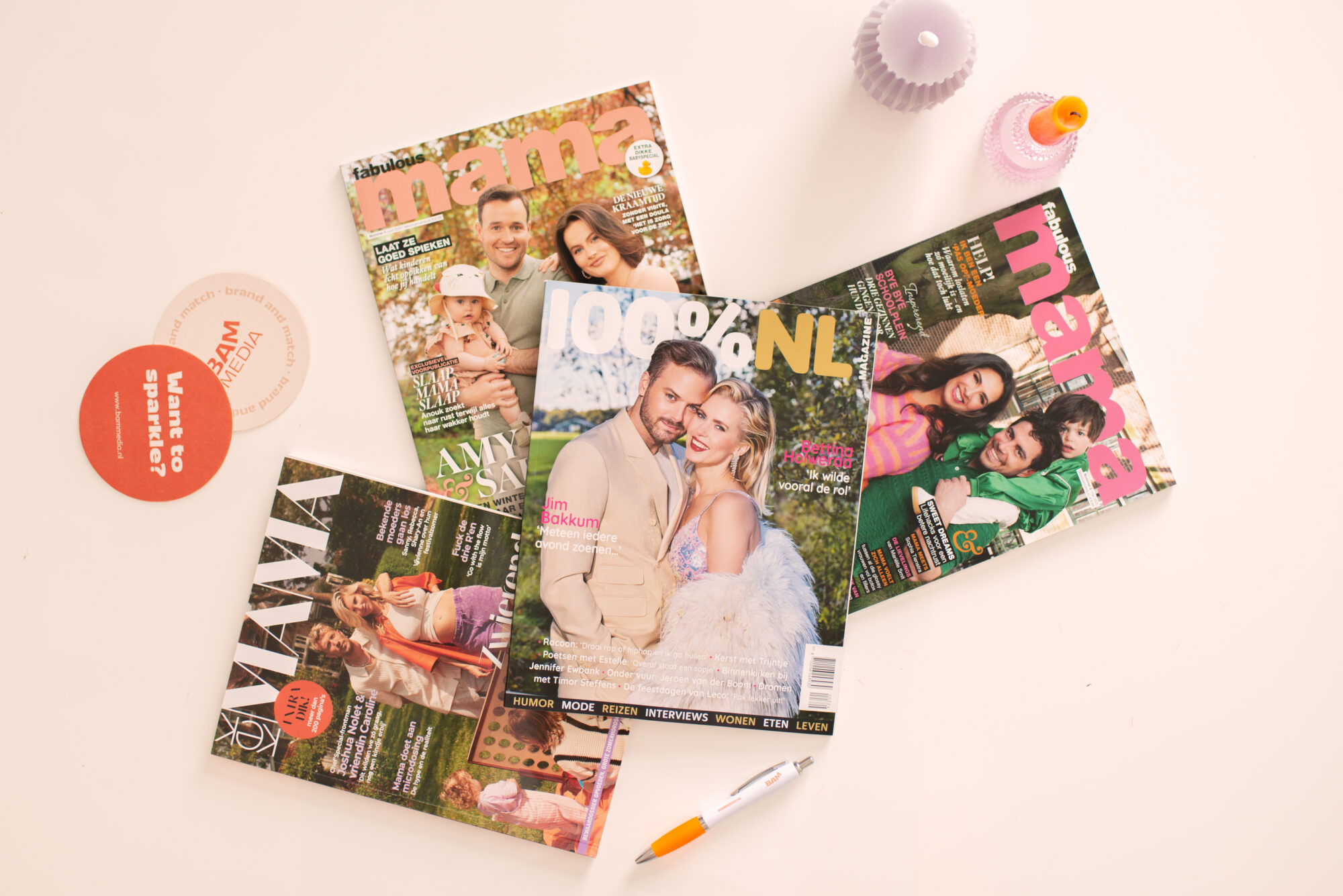 Laat jouw merk schitteren met advertenties in titels zoals Fabulous Mama, Kek Mama & Magazine 100% NL — en verover zo het hart van jouw doelgroep. Kies daarbij voor print, online of allebei!